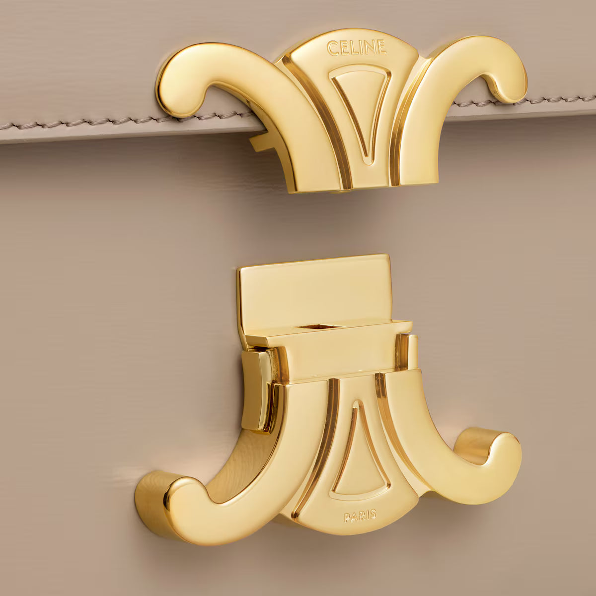 The gold-finished hardware, a signature of the CELINE style, signals its personality. The clasp - a reinterpretation of the Maison’s iconic 1970s logo - integrates a mechanism developed like a piece of jewellery, built symmetrically in two parts.