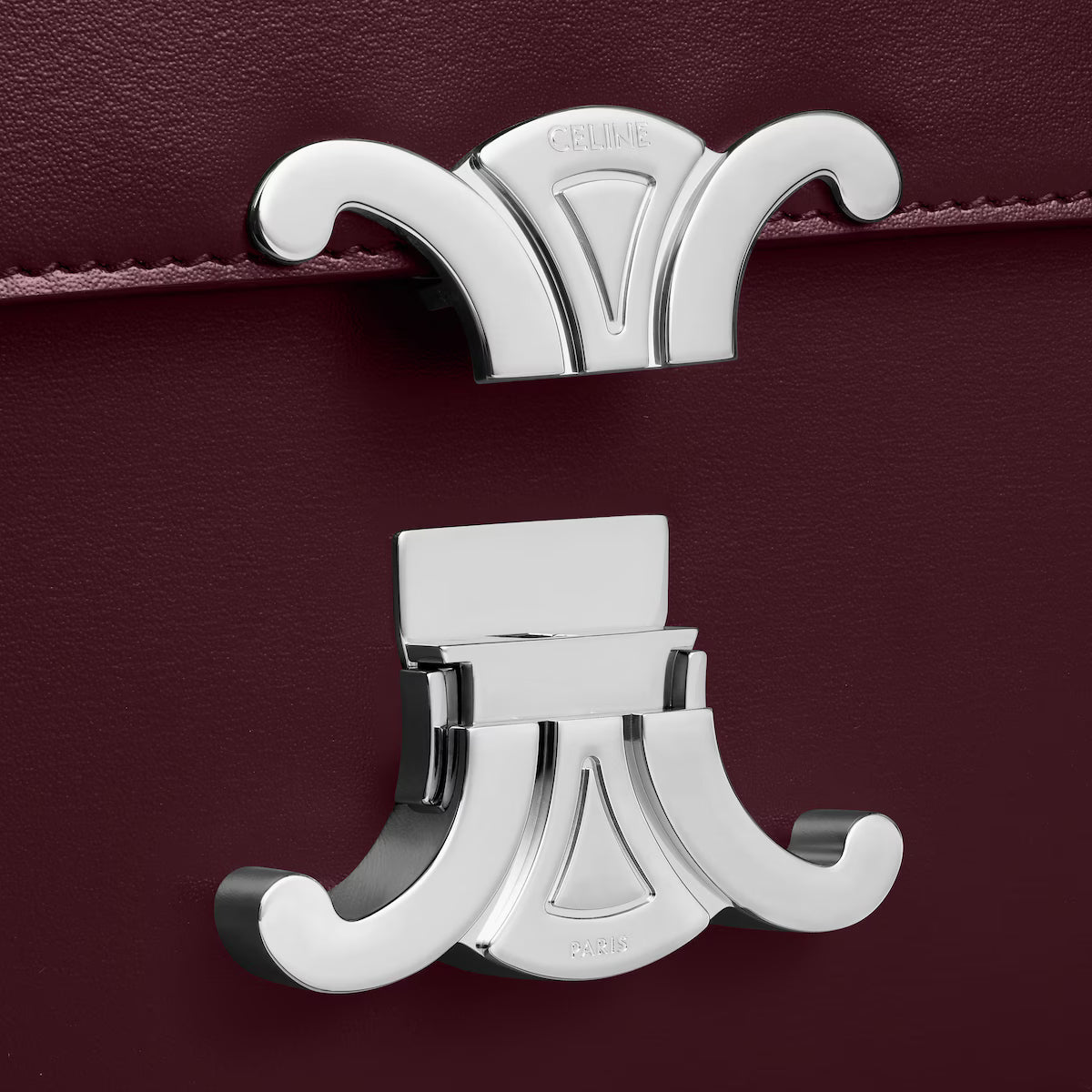 The gold-finished hardware, a signature of the CELINE style, signals its personality. The clasp - a reinterpretation of the Maison’s iconic 1970s logo - integrates a mechanism developed like a piece of jewellery, built symmetrically in two parts.
