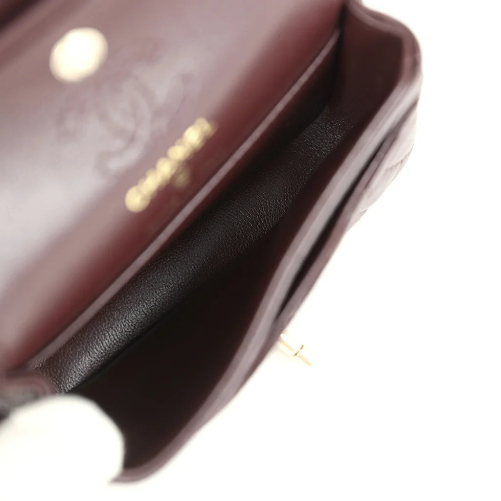 Chanel Nano Classic Double Flap Bag Charm Dark Brown Lambskin Light Gold Hardware