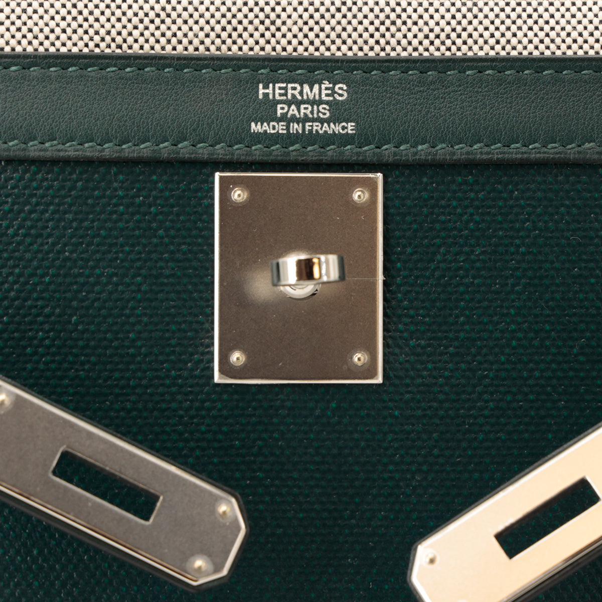 HERMÈS Kelly 32 Sellier Vert Cypress (6O) Swift Toile Berline Palladium hardware D (2019)